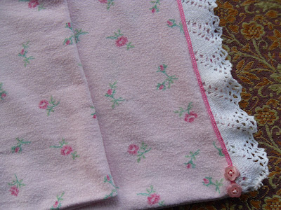 So here's another idea - on Tuesday at the carboot sale I found this rather pretty flannelet sheet, all pink with delightful little rosebuds strewn across it. It cost pennies, so I brought it home.